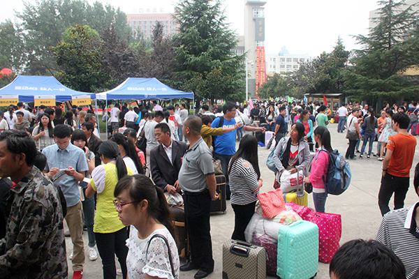 早上7点,迎新工作就进入了紧张而有序的状态🆓®️,位于教学楼前广场的新生接待处,不时迎来一批批洋溢着青春笑容的2015级新生💂。在新生接待处,各分院的工作人员有条不紊地接待着前来报到的新生和家长,他们会心的微笑和关切的问候,让新生和家长感觉格外的温暖。