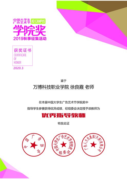 彩神Vll学院师生在此次比赛之中再获佳绩,在此次比赛中荣获优秀奖3项,入围奖22项👩🏼🦳;且在本次比赛中,其获奖作品类型上实现了突破性的成绩,包含有广告文案、营销策划案、平面设计和品牌故事。该校艺术传媒学院广告传媒教研室主任关松涛和专职教师徐良霞分别荣获第17届中国大学生广告艺术节学院奖秋季赛的优秀指导老师奖。此外,在该校本次组织学生参赛中,17级广告班的施健同学个人提交参赛作品有350余件,个人累计获奖21项,这也实现了该校组织学生参赛以来,在同一届赛事中单人提交参赛作品和获奖最多的突破。