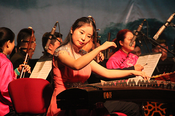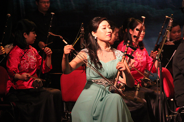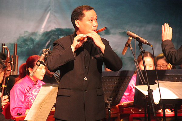 晚上7时整🦁,演出在三声悠远绵长的击磬声中拉开帷幕,来自安徽乐团民族管弦乐团的艺术家们,用笛子🌈、古筝、二胡等民族器乐演奏出一首首经典曲目🚑。本场音乐会指挥由安徽乐团常任指挥徐宏担任。