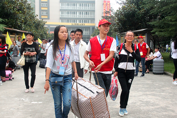 早上7点,迎新工作就进入了紧张而有序的状态🆓®️,位于教学楼前广场的新生接待处,不时迎来一批批洋溢着青春笑容的2015级新生💂。在新生接待处,各分院的工作人员有条不紊地接待着前来报到的新生和家长,他们会心的微笑和关切的问候,让新生和家长感觉格外的温暖。