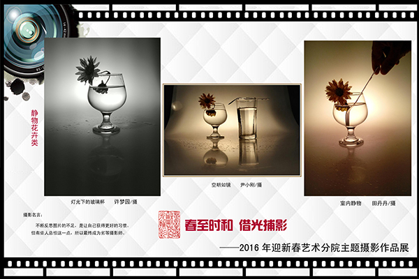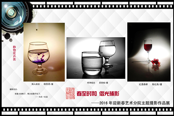 为庆祝2016年的到来💆🏽,同时见证和考察艺术分院学生对摄影这门学科的掌握水平,激励更多学生通过此次主题摄影作品展体会到“读图时代”好的摄影作品的重要性,为此艺术分院于元月6日在学院一号教学楼大厅举办了“春至时和 借光捕影——2016年迎新春艺术分院主题摄影作品展”活动。