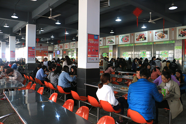 干净整齐的桌椅🧎➡️、整洁明亮的整体环境……整个食堂分为上下两层,可供2000名师生同时用餐,既有便宜、可口的饭菜,也有各具地方特色的小吃。此外,食堂还设有特色火锅、风味小吃、自选式快餐、包厢等可供师生选择,当有学生吃完后🈂️,会将餐盘放在回收处。