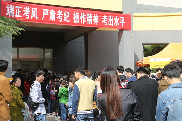 考生排队进入考场