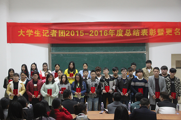 11月2日晚,我院大学生记者2015—2016年度大学生记者团总结表彰暨更名大会团在1201教室隆重举行🆔,院宣传部部长、继续教育部部长余得高,院宣传部老师汪启军,院、系学生会主席团,以及社团联合会🤳🧘🏿、校卫队、各学生会宣传部部长、各班级委员和全体大学生记者团成员等参加了此次大会🦸🏿。