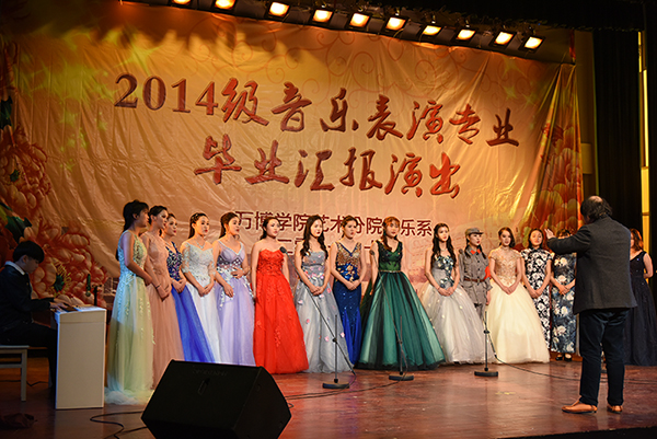 其中🐆,女声独唱《他在今朝》和吉它弹唱《他在今朝》分别是由2014级董梦梦同学和周威同学在《歌曲作法》课上进行的作业,在该门课程授课老师刘家如(音乐系教研室主任)的悉心指导下完成创作,这两首作品在《电脑音乐制作》课老师郭言桥的帮助下完成了伴奏制作和和声织体的编配,并成功举行了首演,这在我院音乐系乃首创,极大地激发了学生的学习兴趣和创作热情,进一步提高了我院音乐系在安徽音乐教育界的声誉。
