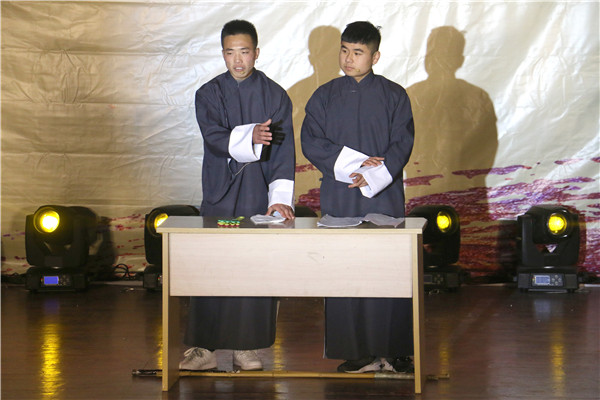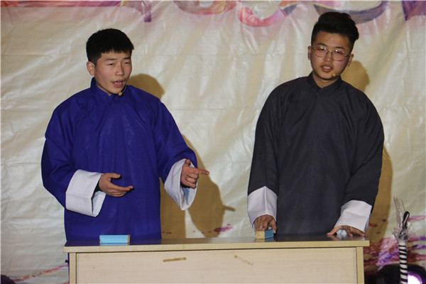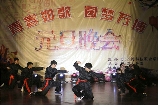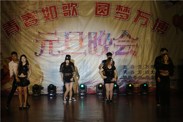 晚会在18点30分准时开场,充满活力、激情四射的开场歌曲《Good boy》瞬间点燃了现场的气氛💓。随后,动情的演唱➜、火热的舞蹈👙、幽默的小品……各种节目轮番登场,你方唱罢我登场🍧,现场气氛十分热烈👨🏼🦲。整场晚会节目内容丰富⤵️,流行与古典兼具🦐,温情与火热并举,形式多样,精彩纷呈。舞蹈🖐🏽、歌曲节目或浪漫温馨,或轻快悠扬👨🏿⚕️🐙,或活泼动感,风格各异,变幻多姿🧑🍼。《上课》🚸、《甄嬛传》、《咋了爸爸》等小品更是让观众乐开怀,其,幽默风趣的台词,滑稽搞笑的表演引得现场观众掌声如雷😔;街舞节目刚健有力,将万博学子的风采展现的淋漓尽致;引爆全场的拉丁舞表演以及扇子舞表演惊艳亮相,演员们跳出了青春的舞步,跳出了生命的色彩,跳出了专属于她们的靓丽风姿,博得现场掌声雷动;歌曲《七里香》、《飘洋过海来看你》等也是亮点频频;相声表演《我要懂规矩》、三簧等以诙谐幽默的语言和肢体在嬉笑吵闹的同时传达出为人处世的哲学🪠。