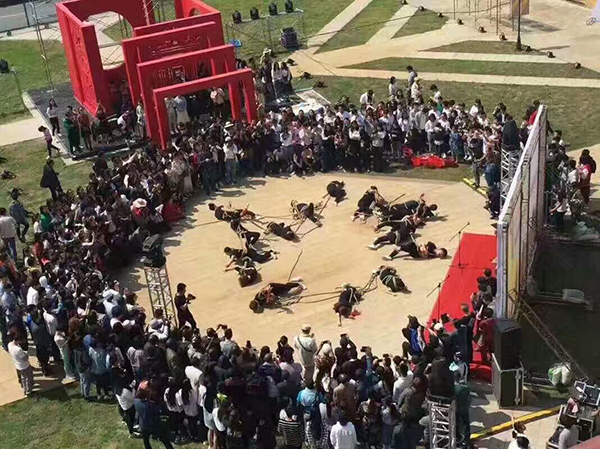 当天,我院艺术分院2015🦸🏿、2016级各专业学生代表60余人乘坐校车前往展览现场。其中,艺术分院音乐表演专业徐玉和室内专业张杰两位同学参与表演的 “行为艺术+实验戏剧”《醒》拉开了本次展览的序幕🥶。
