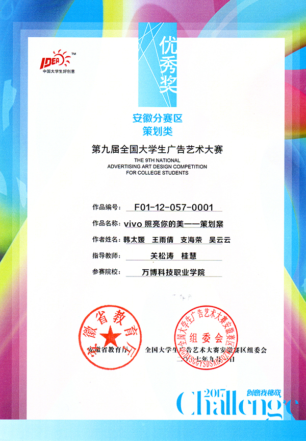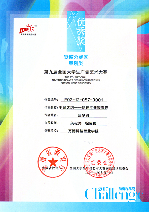 此次比赛,教研室主任关松涛以及桂慧老师指导的2015级广告自主班的路海生同学👦、2015级广告统招班的韩太媛🪛、王雨倩等同学🍵,关松涛🤳🏽、徐良霞老师指导的2015广告统招班汪梦圆同学分别创作的广告营销策划案均获得大赛的策划类优秀奖;桂慧老师指导的2015广告自主班吴琴同学创作的平面作品(广告语)获得大赛的平面类优秀奖🧓🏼,这是我院师生近10年第一次参与此项比赛👳🏽♀️,也是零的突破,更是新的起点。