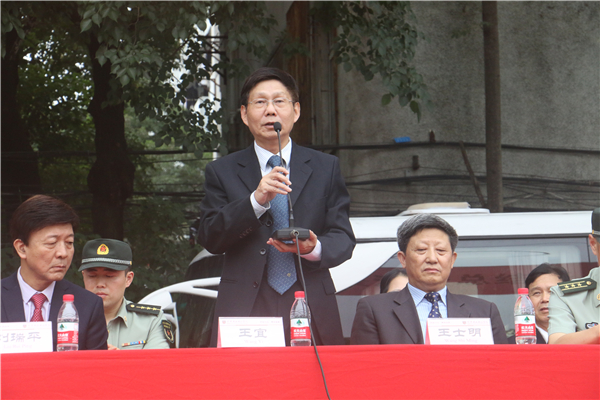 王宜书记宣布彩神Vll学院2017级新生军训汇报表演暨总结表彰大会正式开始!