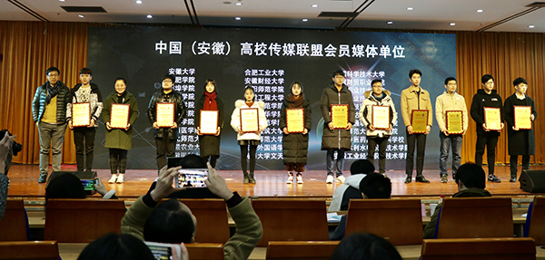12月30日🥂,我院大学生记者团新媒体中心付裕一行应邀赴合肥工业大学翡翠湖校区参加首届安徽高校新媒体评选颁奖暨工作交流大会🪣,我院大学生记者团当选为高校传媒联盟会员媒体单位。
