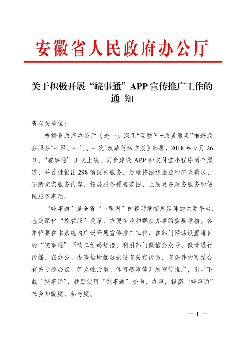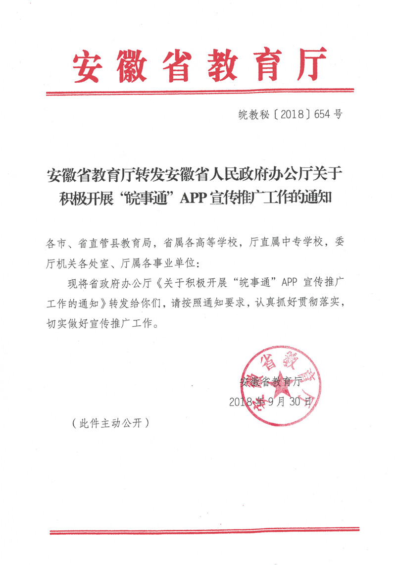 安徽省教育厅转发安徽省人民政府办公厅关于积极开展“皖事通”APP宣传推广工作的通知