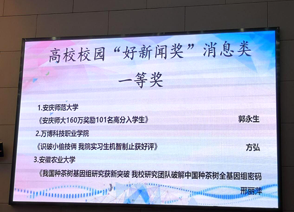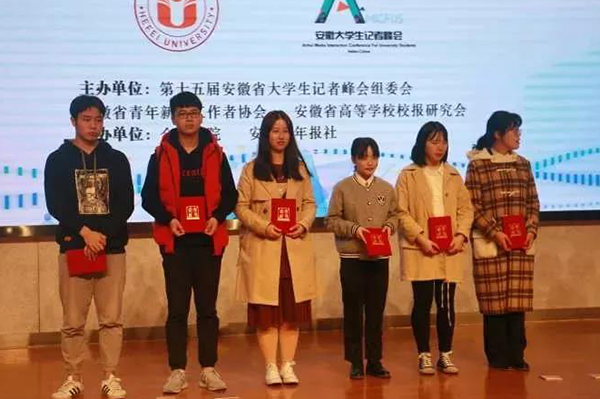 11月11日,由安徽大学生记者峰会🧭、安徽省青年新闻工作者协会和安徽省高等学校校报研究会联合主办👩🏿🏫🦶,合肥学院、安徽青年报社联合承办的第十五届安徽省大学生记者峰会于合肥学院南艳湖校园隆重举行。应峰会组委会邀请☃️🔻,我院大学生记者团学生记者方弘🧔🏻、傅斌、葛莹和张业琦四位同学参加此次峰会,我院方弘同学提交的新闻稿件荣获高校“好新闻奖”消息类一等奖的好成绩。