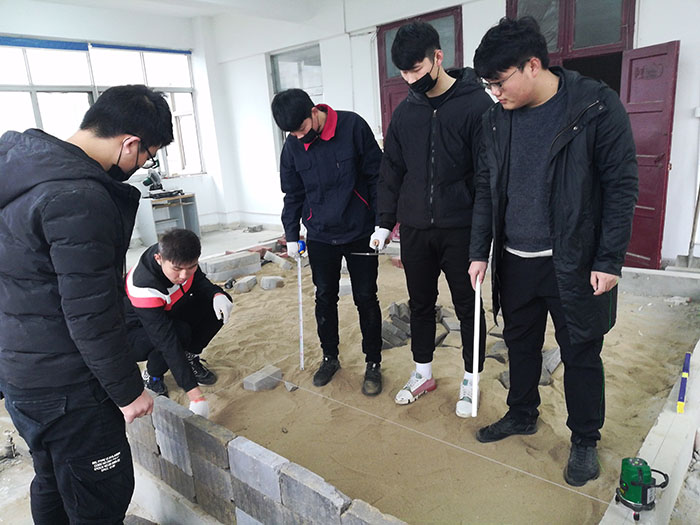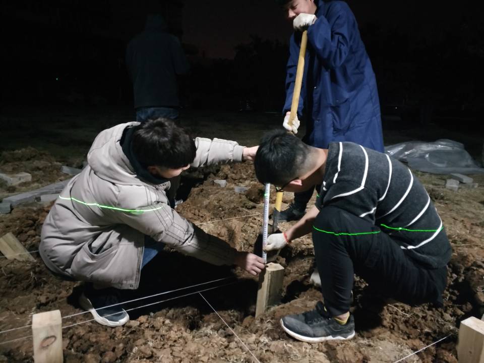 集训期间,参赛同学反复对接施工节点和施工难度及时调整方案,几位指导老师主动放弃休息,悉心指导。连续参加过2017年、2018年该项赛事的代小龙同学无私奉献,在工作之余来校传经送宝,从放线定位、标高测量开始📁,一点一滴帮助他们积累参赛经验♛。
