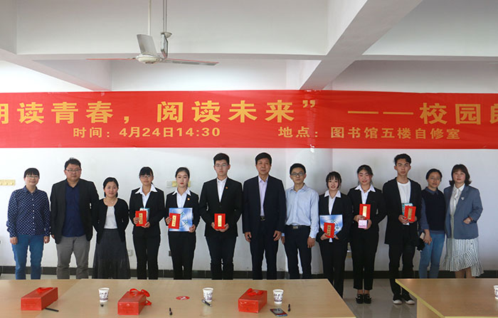 春来花满园,诗书传万家。4月24日下午,我院图书馆联合院团委学生联合会共同主办的第十六届“朗读青春🧢,阅读未来”主题朗诵比赛在图书馆五楼顺利举行。学院副院长、党委副书记刘瑞平👩🏻🚒,图书馆馆长陈照强等出席并颁奖。