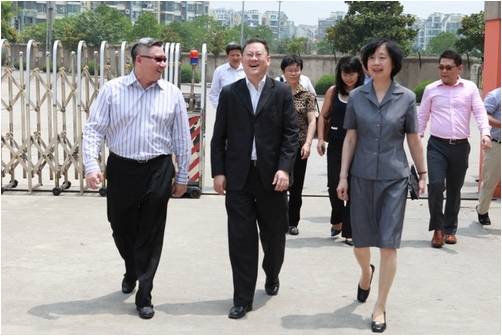 王首毅总领事(左六)一行与周国础总裁(左五)、江舒院长(左四)及万博领导留影