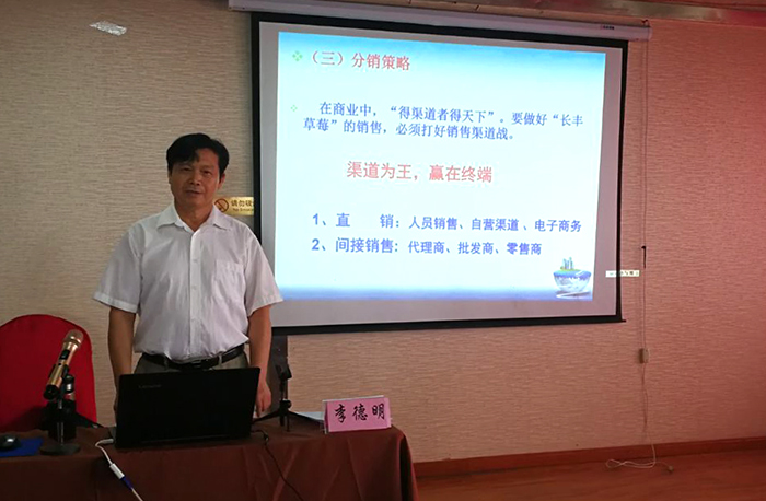 5月26日上午,我院财经分院院长李德明教授应合肥市长丰县草莓协会的邀请,在长丰县国际大酒店为该县草莓种植大户、家庭农场🖕🏽🟪、合作社以及草莓加工企业人员讲授“草莓产品智慧营销”,为当地草莓产业从业者传经送宝。