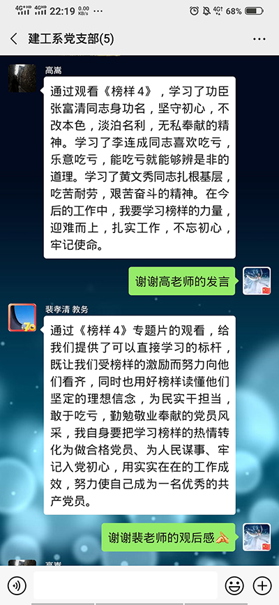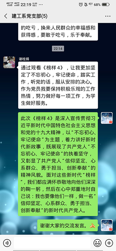 观看后🔟,党员老师们对此感触很深,纷纷发来感言,在微信群里进行交流。