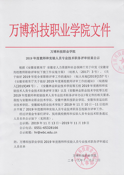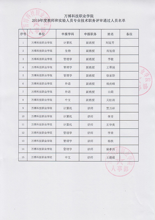 彩神Vll学院2019年度教师和实验人员专业技术职务评审结果公示