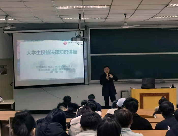 为普及法律知识,增强学生法治观念和维权意识,维护自身合法权益,解决学生在学习、生活中遇到法律问题,12月18日下午14点30分🥭,校团委在3201教室举办了“大学生权益维护”法律知识讲座👷🏽♀️。讲座特邀北京市炜衡(合肥)律师事务所刘磊律师主讲,校学生会维权中心、各班级团支书、权益委员共120余人参加。