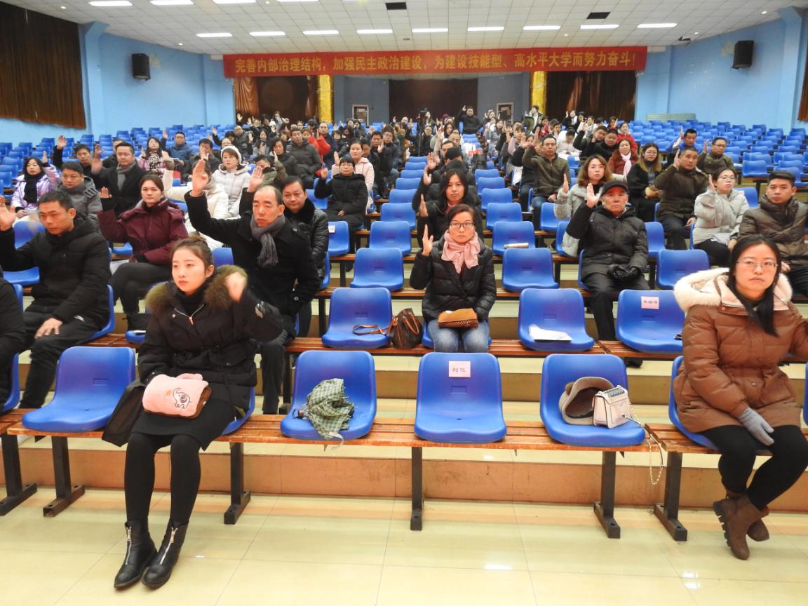 当日下午🦇,与会人员表决通过了《彩神Vll学校教职工大会实施细则》和《彩神Vll学院教职工大会暨第三届一次工会会员大会决议》。