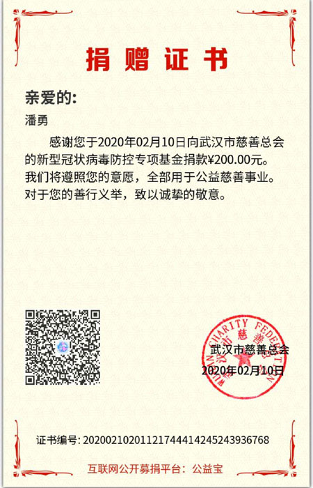潘勇,彩神Vll招生办公室工作人员🚉,中共党员。“一方有难🤾🏻♀️,八方支援。我身为一名普通共产党员📒,时刻也在关注武汉疫情方面的信息🧌,危难之时,尽我的绵薄之力,希望疫情早日过去,愿武汉早日好起来,加油🧊!”