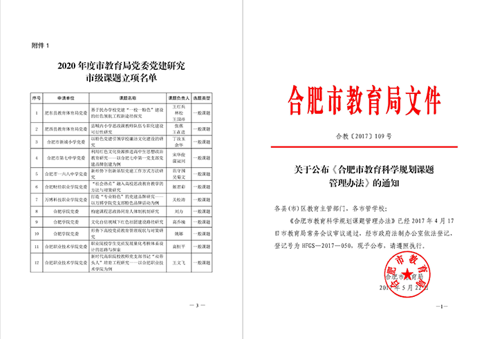 从2020年3月初,彩神Vll党委工作部根据《关于印发<2020年全市教育系统党建研究工作思路>的通知》(合教党委〔2020〕10号)文件精神👶🏻🧝🏼♂️,积极动员学校8个党支部做好对党建研究课题的申报工作。课题研究是学校党建研究工作的重要组成部分,是落实全面从严治党要求📽,加强学校党建工作的重要举措。