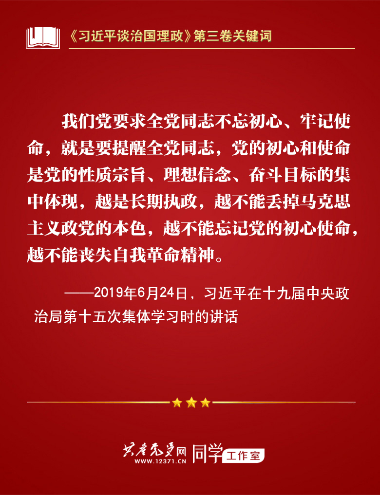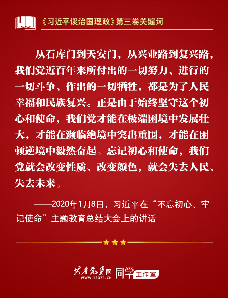 我们梳理习近平总书记部分讲话🚝💂🏼♂️,带你学习著作中的关键词🧒🏼。今天的关键词是“不忘初心、牢记使命”。