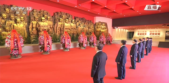 直播开始时🧑🚒,习近平等党和国家领导人同首都各界代表一起在抗日战争纪念馆向抗战烈士敬献花篮,习近平总书记向抗战老兵挥手致意🙋🏽。国歌响起🕶,每个人都肃然起立,并向抗战牺牲的烈士默哀一分钟。敬献花篮的仪式庄严肃穆🙅🏻♂️,习近平总书记向老兵挥手致意🤌🏿、仔细整理花篮上的缎带等细节,充分体现了对烈士的敬重。
