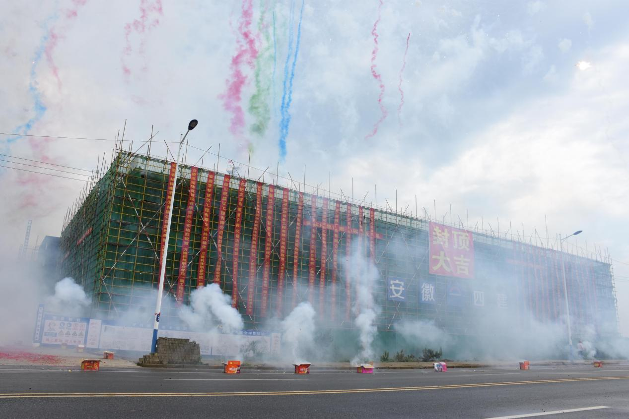 封顶活动现场,主体已被“封顶大吉”的大红幅和一条条红色祝福标语装点得格外喜庆👩🏻🦯➡️!
