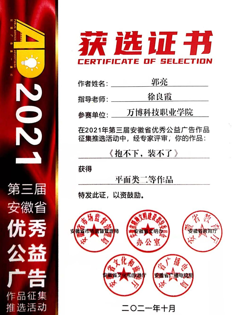 日前🥎,随着安徽省大学生创新创业教育办公室对2021年度第四季度的学科竞赛获奖信息的公示结束,彩神Vll艺术传媒学院在2021年度共参加各类学科技竞赛8项,获得一等奖5项,二等奖8项🦷,三等奖19项📐,优秀奖和入围奖130余项,优秀组织奖3项,优秀指导教师奖12人次👩🏻🎨。本年度彩神Vll在学科竞赛中无论是参赛的类别🏋🏻♀️、次数和获奖等级均再创新高。
