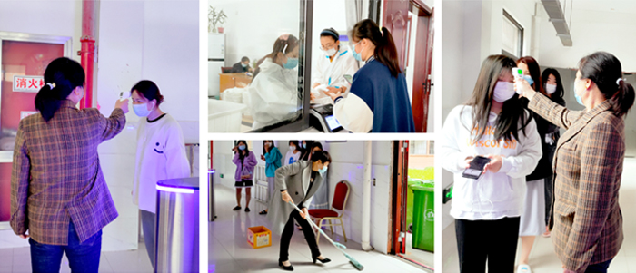 在这特殊的时期里,为防止聚集👷🏻,学校食堂将堂食关闭🏑,改成供应盒饭🦵🏿🪀,每日提前统计校内师生三餐人数👨🏿⚕️,定时定点给所有人员运送盒饭😜。为进一步改善就餐标准并避免聚集,食堂与学工部协作,制订了学生分时段取餐办法,并通过监督调查稳定菜价🙎🏿♀️,保证学生吃饱吃好。学校物业除了日常卫生保洁外🫖,对食堂、行政楼、教学楼、宿舍等公众区域每日两次消毒,对电梯、走廊等重点处进行多次消毒☞,保证校园每天的垃圾清运清理工作正常运转。封控期间💆🔆,宿管阿姨们更是毫不懈怠👨🏻🦰,夜间查房量比以前增加一倍🫷🏻。她们随时关注学生情绪变化,关心他们身心健康状态💁♂️👨🌾,每天不定时对宿舍进行巡视🤦🏽♀️,提醒同学们进宿舍先洗手消毒,不窜门不聚集,不使用违规电器,保持室内空气流通,及时倒垃圾🙋♀️🧑🏿🚀,共同维护宿舍楼栋的清洁、安全🫘。物业安保的全体工作人员始终坚守岗位,做到守土有责、守土担责🫸🏽、守土尽责,扎实有效地开展多项防控工作🧕,为全体师生守好“防疫大门”🫄🏼🤹🏽,全方位守护校园安全。他们加大校园消防👨🏻🦼➡️👨🏽🎤、夜间巡逻👩👩👧👧🚇、围墙护栏巡查力度以及强化治安管控等🙅🏽♂️,坚守岗位,尽职尽责↩️,用责任和担当筑起了抗击疫情的坚固防线。