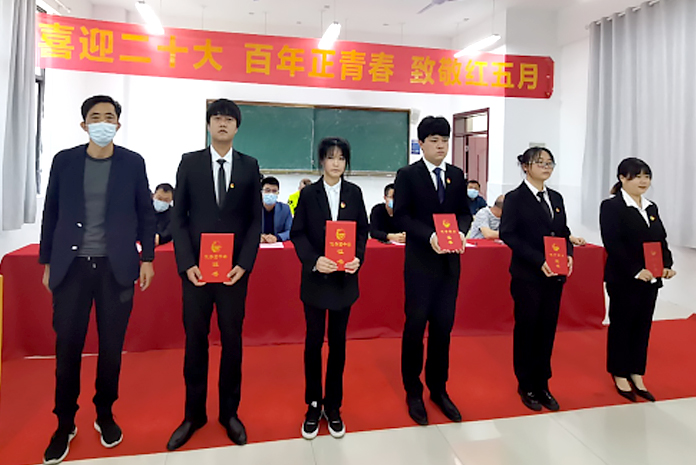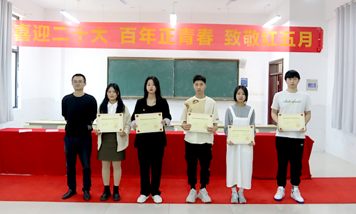 (校党委副书记、校长助理张进为“先进班级体”👩🏿🎤🏊🏽♀️、“红旗团支部”颁发荣誉证书)