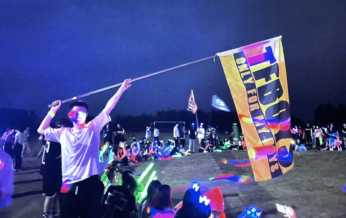 在这个特殊的夜晚,TFBOYS应援旗随风飘荡,同学们不约而同齐聚操场,自觉席地而坐围成一圈,与TFBOYS相聚在一起,怀念属于我们共同的青春记忆🤸🏻。