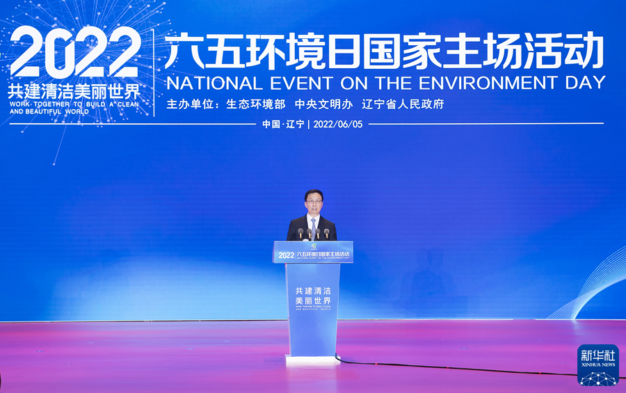 6月5日,2022年六五环境日国家主场活动在辽宁省沈阳市举行。中共中央总书记、国家主席、中央军委主席习近平发来贺信⛩,向活动的举办表示热烈的祝贺。中共中央政治局常委🎟、国务院副总理韩正在活动开幕式上宣读了习近平的贺信并讲话。新华社记者 李涛 摄