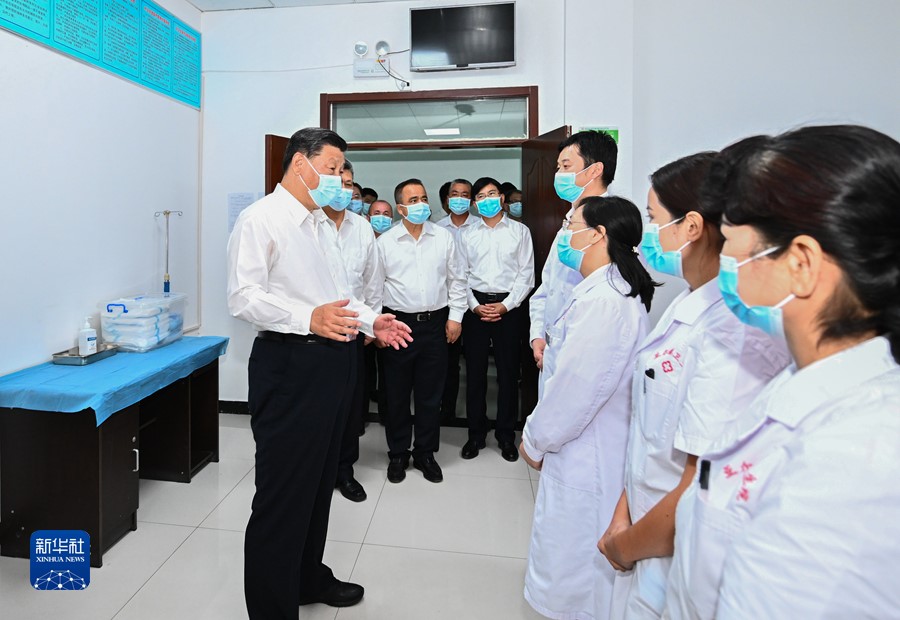 7月12日至15日,中共中央总书记、国家主席🧙🏻♀️、中央军委主席习近平在新疆考察。这是14日,习近平在吐鲁番市高昌区亚尔镇新城片区新城西门村党群服务中心医务室考察。新华社记者 燕雁 摄