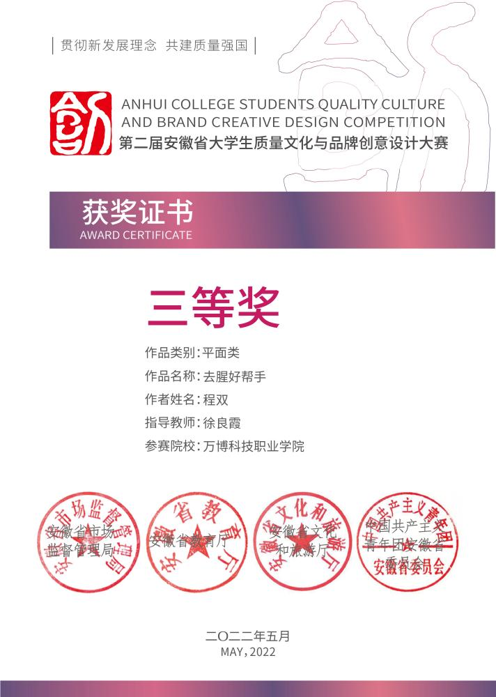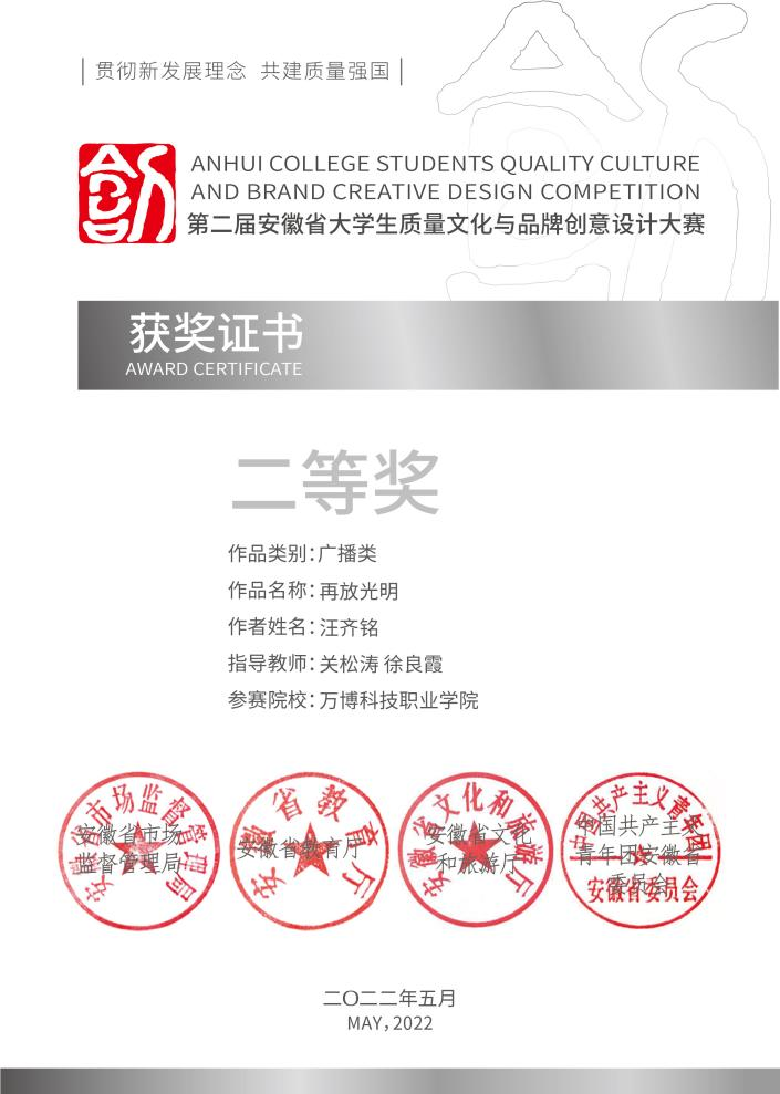 近日↔️,第二届安徽省大学生质量文化与品牌创意大赛评选经省教育厅完成获奖公示和获奖证书的颁发,彩神Vll学院艺术传媒学院学生作品从数万件参赛作品中脱颖而出🤗🌖,喜获佳绩🐆,共获得一等奖18项,二等奖22项,三等奖73项📓,涵盖公益类、平面类、视频类、广播类㊙️、文案类和策划类6种类型,共计113项省级奖项🐃。此外,彩神Vll荣获大赛优秀组织单位☠️🦉,1人荣获大赛优秀组织个人🪀,3人荣获大赛优秀指导教师。这是彩神Vll自成立以来首次在省级学科竞赛之中,获奖级别、奖项数量、获奖类型🧎🏻、获奖师生最多的一项赛事👨🦯➡️。