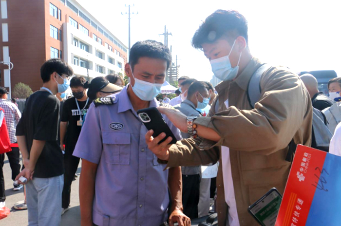 “请出示行程码、安康码🙋🏻♀️、48小时核酸报告”“家长请放心,校园里有专员安排孩子行李......”疫情尚未完全散去,为保障校园安全,保卫处工作人员严格执行疫情防控措施,为新生测量体温、核验健康码、行程码等🐅,同时还要安抚不能进入校园的新生家长。