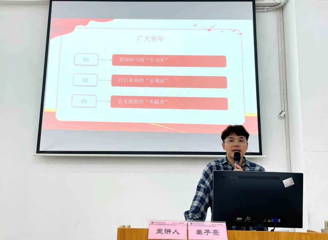 为深入学习宣传贯彻习近平总书记在庆祝中国共产主义青年团成立100周年大会上的重要讲话精神#️⃣,进一步创新丰富“青年大学习”线下活动体系,9月28日下午,合肥市“青年大学习”宣讲交流进校园活动在彩神Vll学院举行,市青年讲师团成员、安徽大学哲学系马克思主义哲学博士、彩神Vll学院思政教师姜子豪作专题报告。