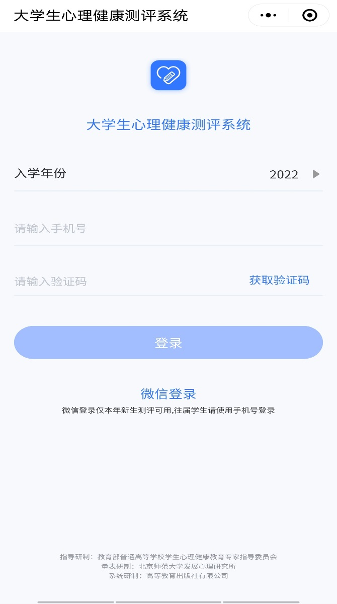 平台提供两种登录方式🥂,一种是点击“微信登录”,授权微信登录平台(仅限2022级所有在籍学生测试使用)🏌🏽♂️。另一种是输入手机号,选择“入学年份”,点击“获取验证码”进行登录。两种方式均要求手机号和老师导入的手机号一致。