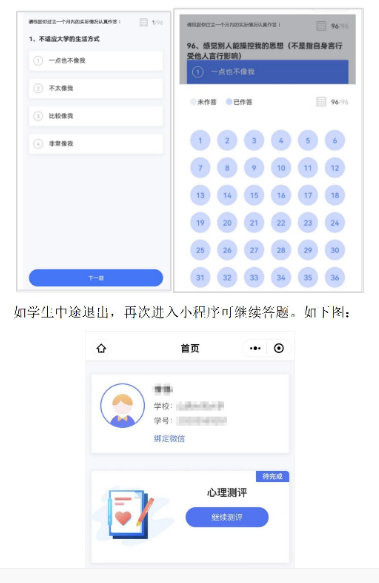 如测评者中途退出👷🏼,再次进入小程序可继续答题,如下图: