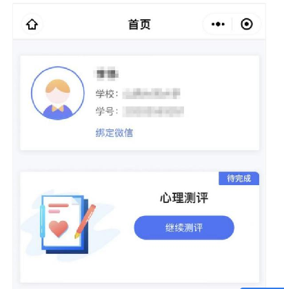 第四步🏂🏼:登录后可看到个人信息和心理测评两个模块。点击“绑定微信”,下次即可一键登录,无需再进行手机号验证码操作🙆♂️。