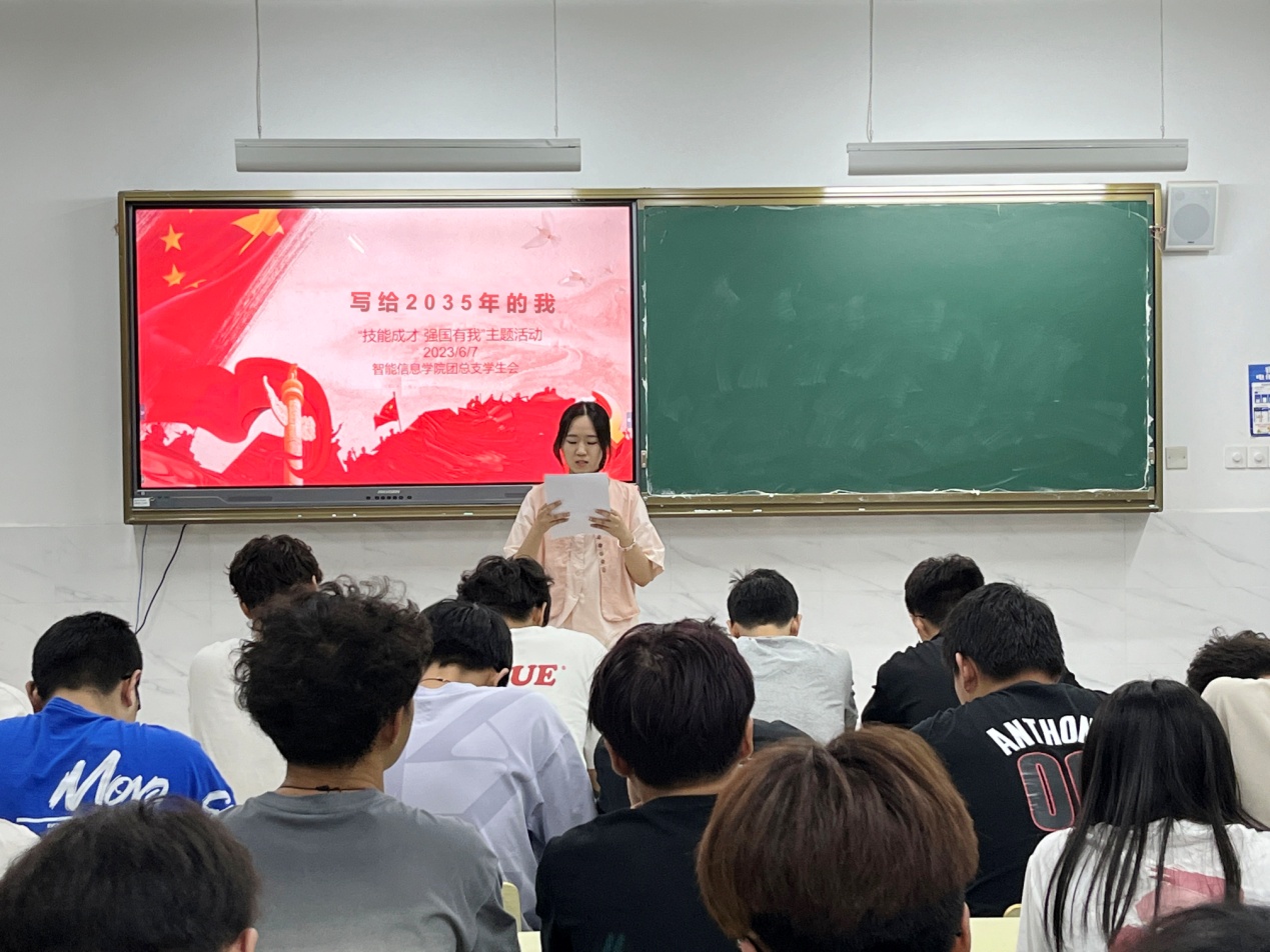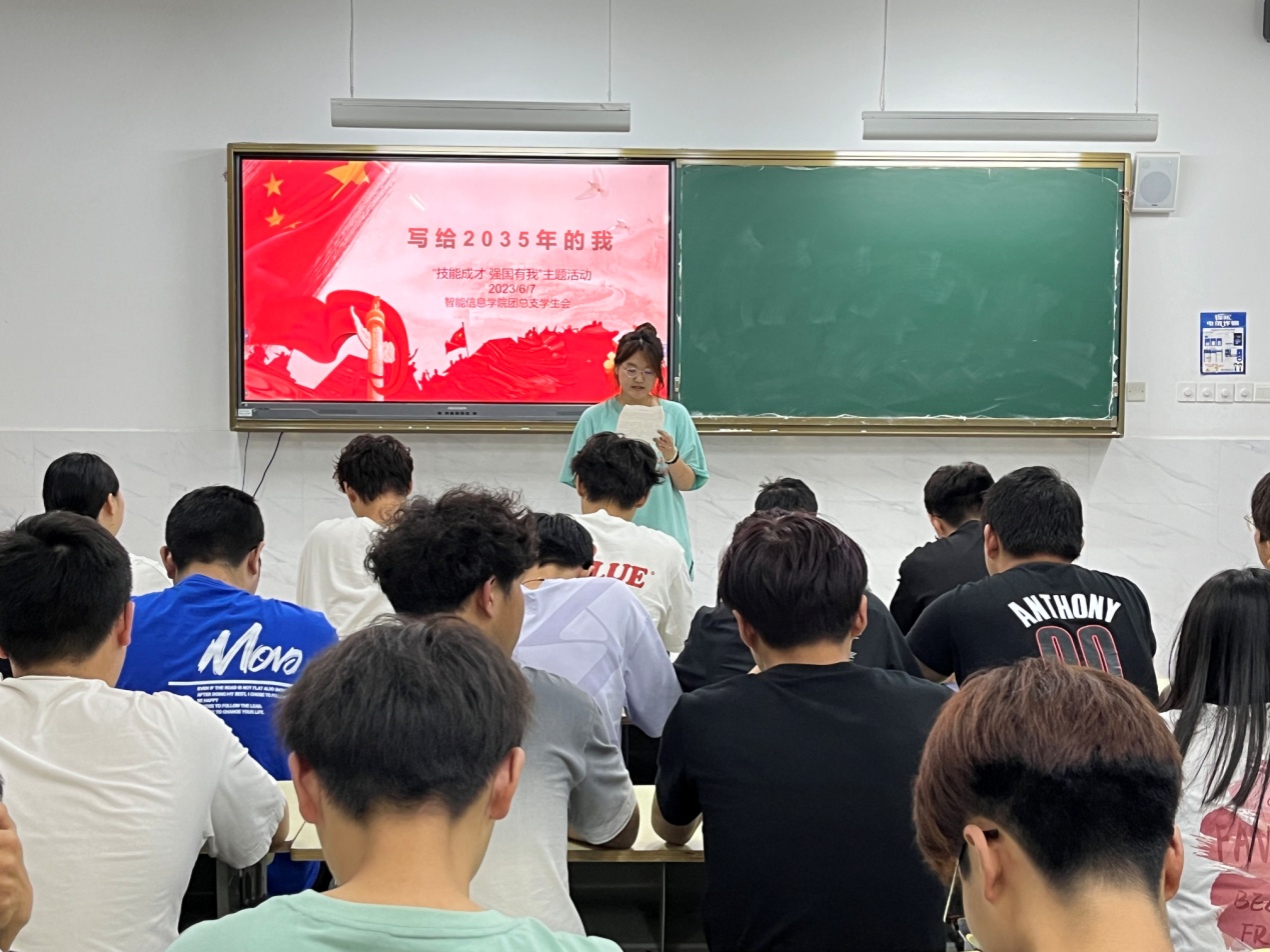 为深入学习贯彻党的二十大精神,引导学生结合所学专业展望美好前景👇🏼,明确努力方向,树立远大理想。根据省教育厅关于开展“技能成才 强国有我”系列教育活动精神♔,智能信息学院团总支学生会于6月7日晚在1305教室开展“写给2035年的我”主题演讲活动🌇。