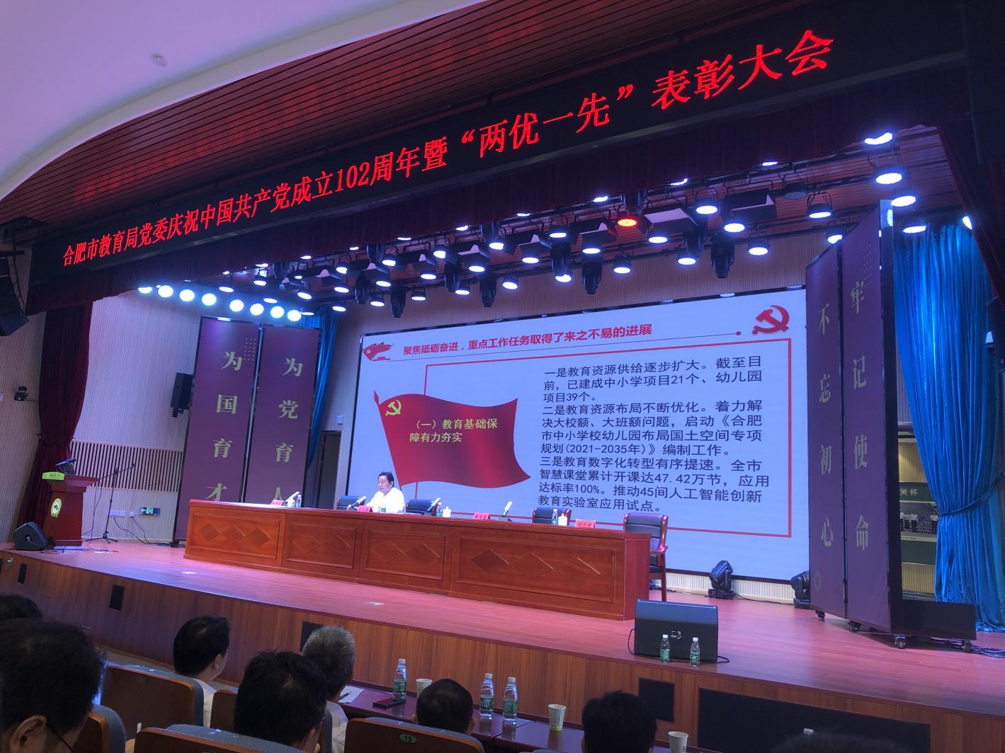 6月30日上午🫃🏼,为庆祝中国共产党成立102周年💾,合肥市教育局党委在合肥八中百川礼堂召开庆祝建党102周年暨“两优一先”表彰大会🚳,表彰一批优秀共产党员、优秀党务工作者和先进基层党组织。彩神Vll刘圣蕾😝、张静两名同志被授予“优秀共产党员”称号,高嵩同志被授予“优秀党务工作者”称号,机关第一党支部被授予“先进基层党组织”称号。