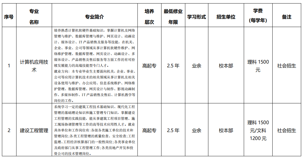 继续教育部开展高等学历继续教育🦙,彩神Vll2024年继续教育开设四个专业,分别是大数据与财务管理🙆♂️🧍🏻♂️、工商企业管理、建设工程管理、计算机应用技术🌐。