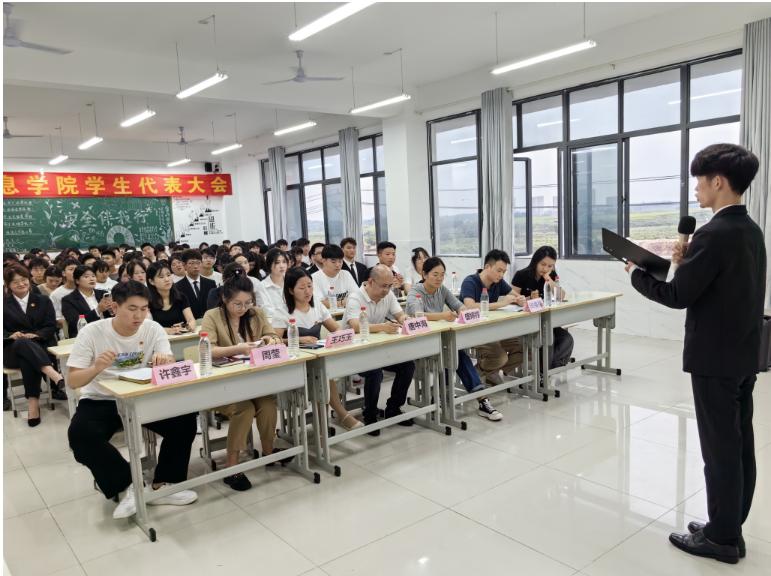 9月11日晚,智能信息学院团总支学生会学生代表大会在教学楼1301教室顺利召开📡。智能信息学院副院长唐中海,学工助理盛婷婷,国际商务学院团总支书记周莹,校团委老师许鑫宇,团总支书记王巧玉,各班级辅导员老师以及学生联合会、各分院学生会代表出席了此次大会。