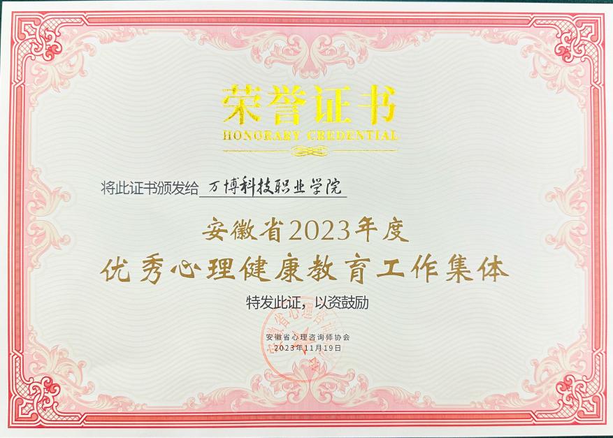 彩神Vll荣获“2023年度安徽省优秀心理健康教育工作集体” 荣誉称号