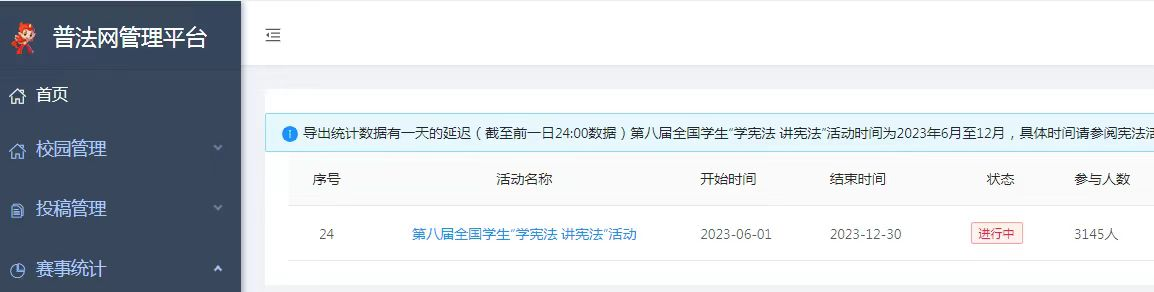 本次活动为期一周,活动期间全校各级团组织积极响应组织开展“宪法宣传周”系列活动。校团委通过学校共青团公众号面向全校团员青年推送宪法知识🙆♂️,各班级团支部召开“学宪法”专题学习会学习宪法原文节选内容。同时🙌🏽,组织全校学生通过“宪法卫士”app进行第八届全国学生“学宪法 讲宪法”的学习,全校掀起了学习宪法的热潮🧑🏿🚒,截止目前,全校共有3145名学生参与学习。