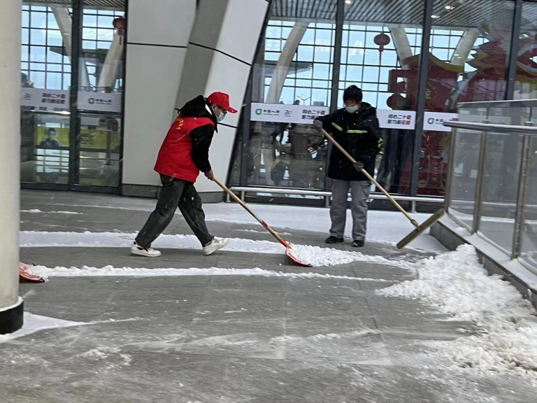 寒假期间,我省多地出现大雪天气🏊♀️🔘,为了旅客的安全与方便行动不便老年人的出行🤦🏿♀️,每个站台和有人出行的过道,只要有雪花落下🔁,高铁站工作人员都会及时划分区域,有条不紊地进行铲雪🧏🏽♂️、运雪,直至道路被清理得干干净净。