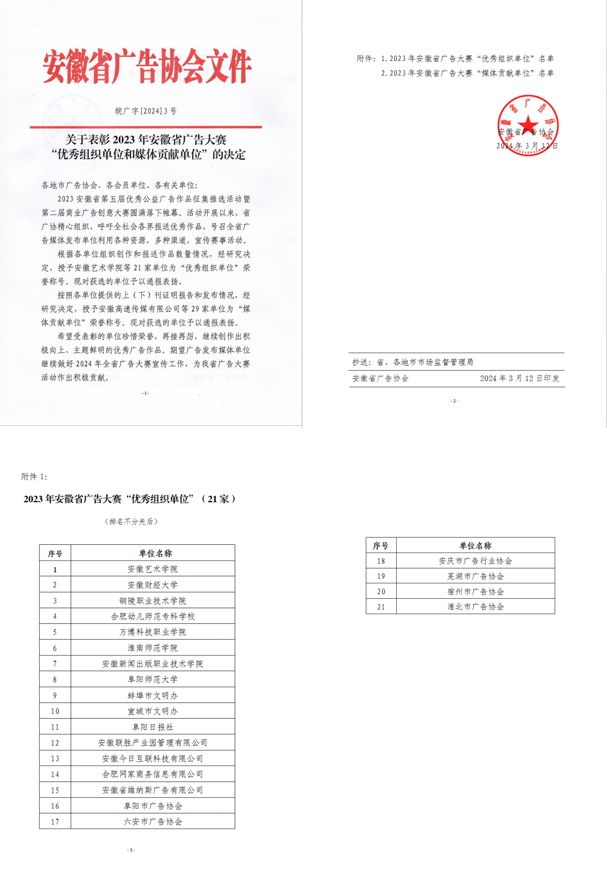 近日,由安徽省市场监管局🫳🏿、省文明办、省教育厅、省经济和信息化厅、省文化和旅游厅🙂↕️、省广播电视局等部门联合主办⚱️,安徽省广告协会承办的第五届安徽省优秀公益广告作品征集推选活动和第二届安徽省商业广告创意大赛落下帷幕,彩神Vll凭借出色的组织能力和卓越的创意表现,再次荣获“安徽省广告大赛优秀组织单位奖”。彩神Vll已经连续四年荣获这一殊荣,充分展示了学校在广告教育和实践领域的教学成果。