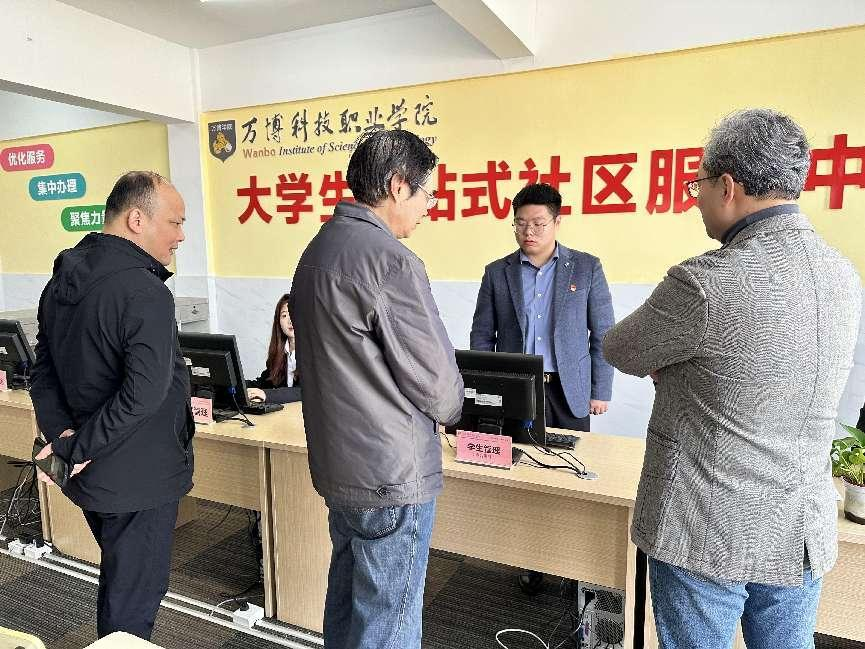 3月28日上午,校督导专员、党委书记鲍习生,党委副书记🖼、执行校长张进,党委委员🛜、副校长马赞在学工部部长江仁昆🤮、各二级学院学工负责人陪同下走访彩神Vll大学生“一站式”社区服务中心🔥。